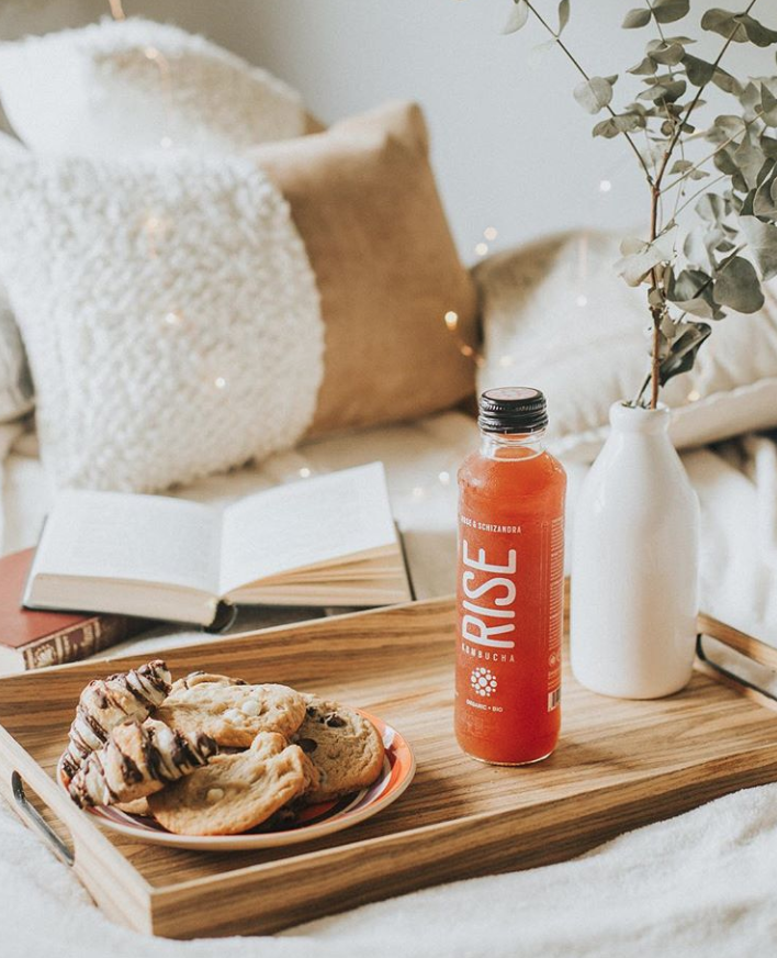 Rise is a Canadian produced, organic, fair-trade vegan kombucha (a mix of tea, water, raw sugar, natural flavours, and SCOBY culture fermented together into a delicious concoction). The perfect balance of fizziness and bold flavour, Rise Ginger Kombucha does have a small amount of caffeine in it but nowhere close to the amount in a cup of coffee- this flavour is actually brewed with white tea, making it the ideal choice for those of us who are sensitive to caffeine’s effects.